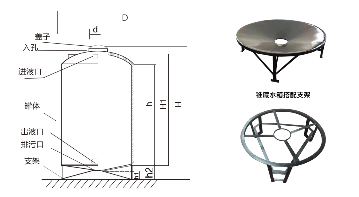 采用進口食品級PE原料,滾塑一次成型。桶體底部為錐底。碳鋼底座整體配套,桶內(nèi)液體可一次排凈,無殘留物,易清洗。產(chǎn)品適用于水處理、環(huán)保、電子、化工、食品、醫(yī)藥、建筑等各行業(yè)。