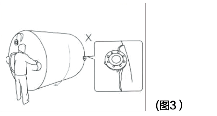 3、搬運(yùn)、滾動(dòng)本產(chǎn)品時(shí)避免傷及接頭(或法蘭)和觸及突出物。(圖3)