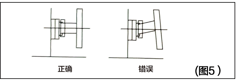 6、法蘭連接請參照下圖正確角度安裝,法蘭連接面墊片請確實(shí)貼合,單面傾斜貼附易造成滲漏現(xiàn)象。(圖5)
